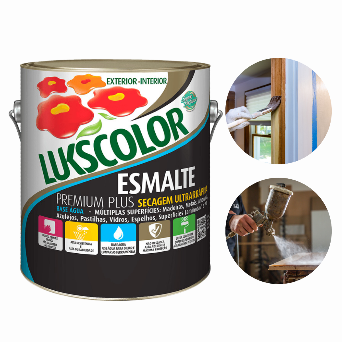 ESMALTE BASE ÁGUA PREMIUM PLUS BASE EFEITO METALIZADO protege e decora múltiplas superfícies. Indicado para pintura de portas, janelas, portões, móveis, objetos, etc. (não indicado para pisos). Produto base água, que pode ser dosado no Sistema Tintométrico LUKSYSTEM ou aplicado sem tingimento como efeito metalizado. Com Suave Perfume, proporciona conforto e bem-estar, permitindo a permanência no ambiente do início ao fim da pintura. Por ser um produto de efeito, não recomendamos retoques.