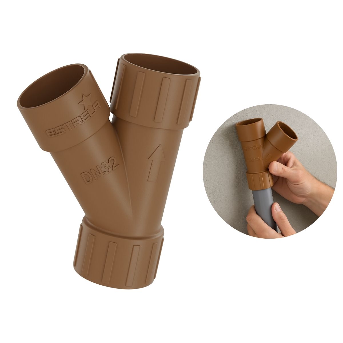 - Formato Y com ângulo de 45°, ideal para direcionamento de fluxo