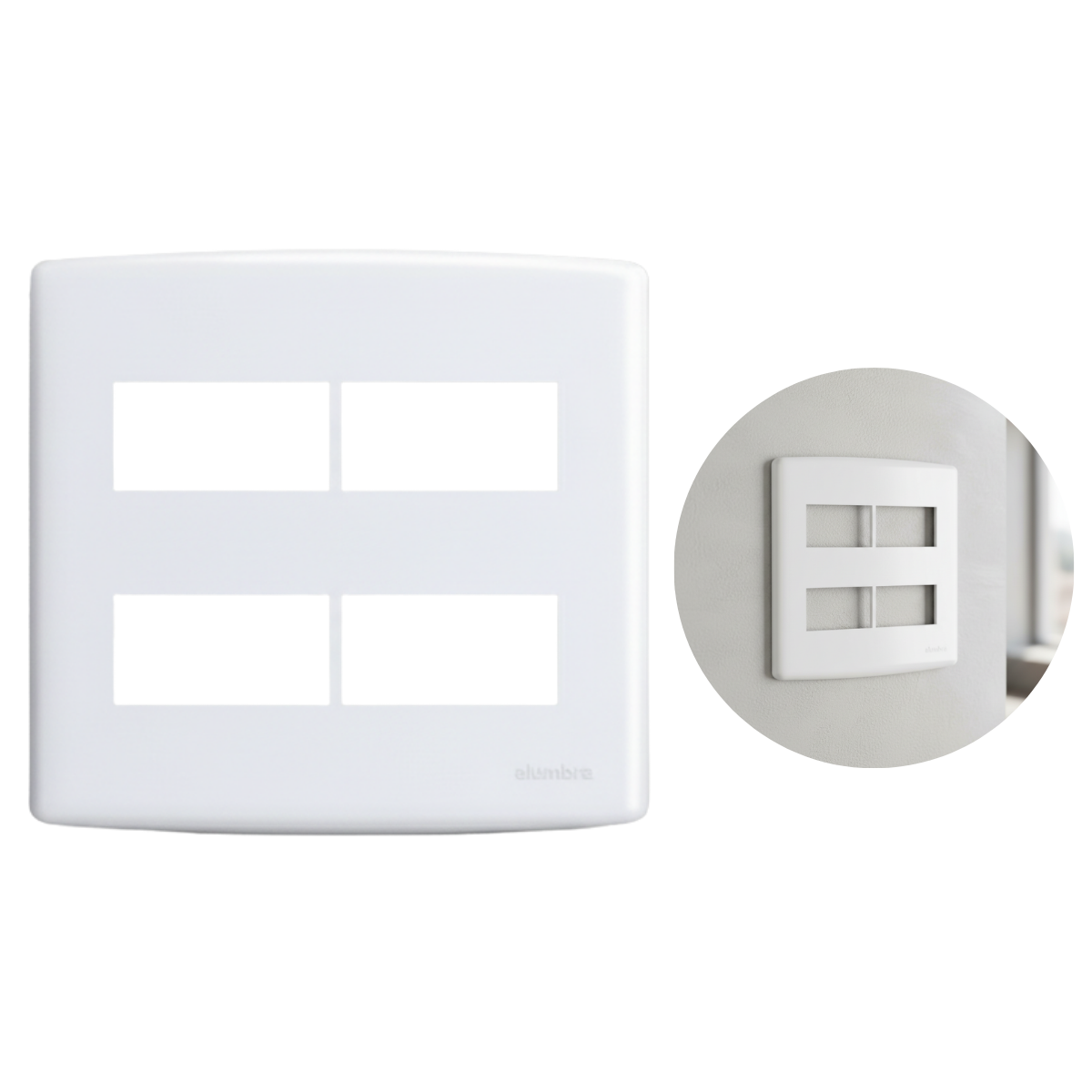 Placa 4x4 para 4 módulos distanciados com suporte. material plástico de engenharia com aditivo auto extinguível e proteção contra raios UV. Siena é a linha de interruptores e tomadas da Alumbra que é sucesso em todo o Brasil, isso porque reúne atributos como beleza, praticidade e economia.